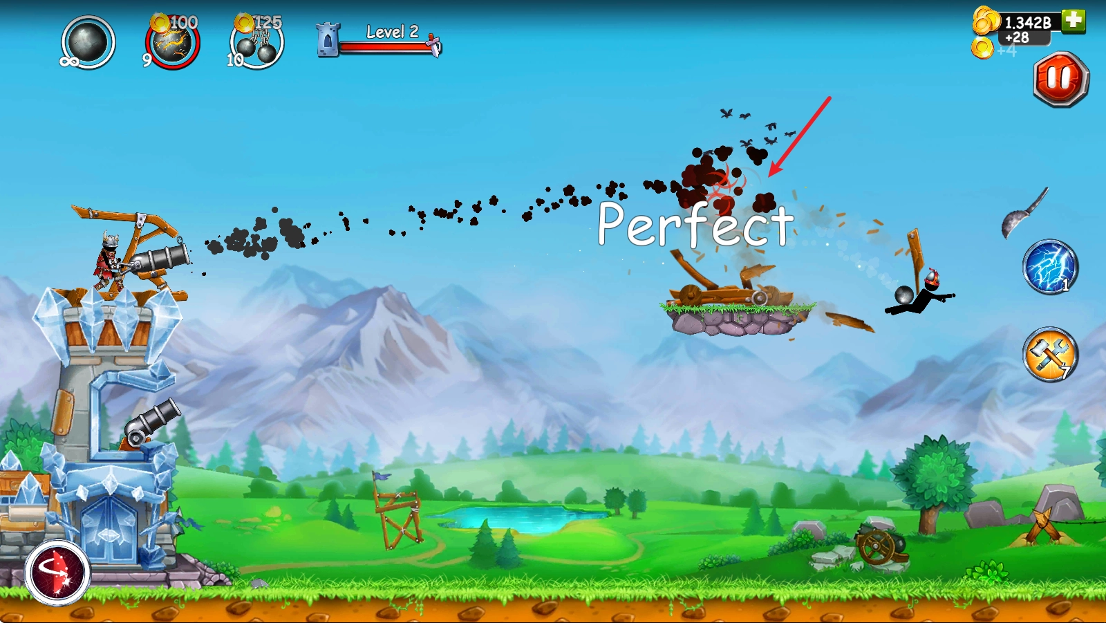 瞄准好后松开手即可发射,击中后敌人就会掉落。