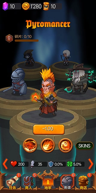 初始属性设定如下:生命值为200点,攻击力数值是35,防御力百分比为0%,幸运属性占比5%。