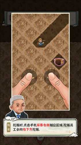 挖掘时,点击手机屏幕右侧的对应区域,挖掘员工便会朝右下方进行挖掘。