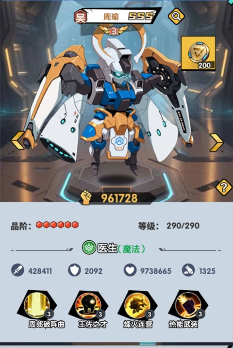 这是一款物理类机甲,和其他职业相比,它的生存能力更强,能承受更多的伤害。