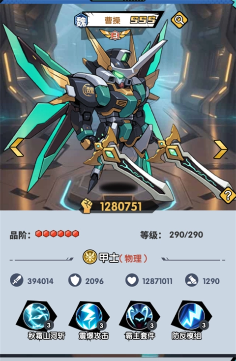 为物理类机甲,技能通常携带大量特殊效果。
