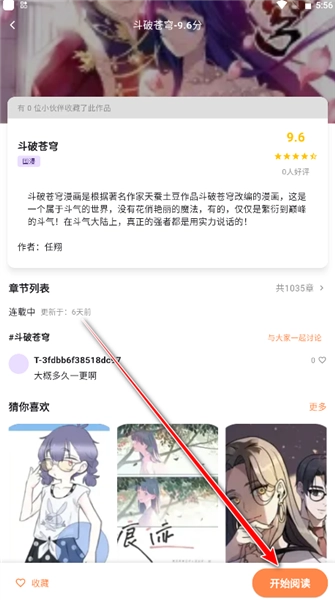 进入漫画主页后,我们可以先点击下图所标注的位置,把它收藏起来。