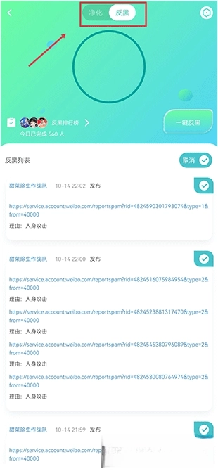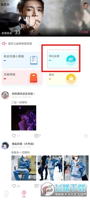 打开星芒App,在星圈界面中点击净化反黑
