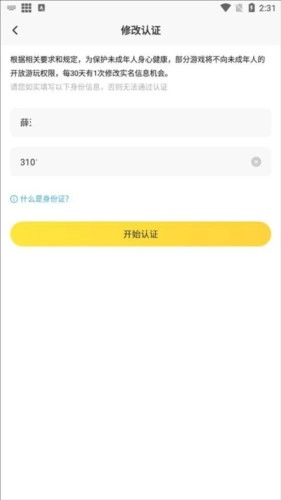 填写最新的实名信息后,点击“开始认证”按钮以完成更新流程。