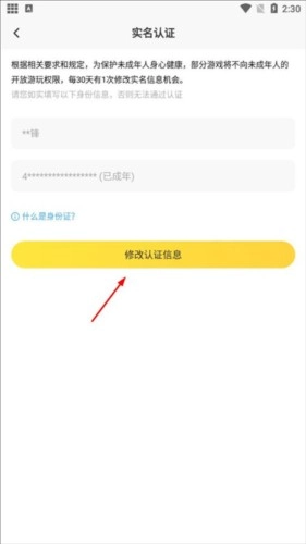 点击下方“修改认证信息”按钮,即可着手编辑新的身份资料。