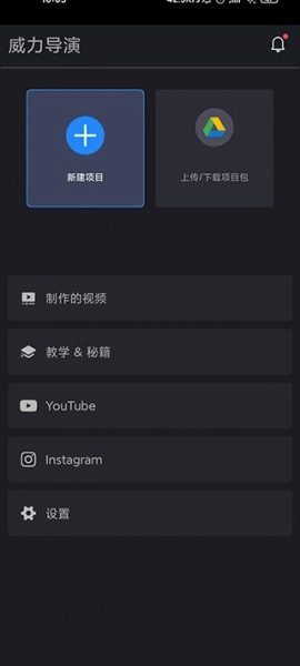 在首页,用户能够进行创建视频、查看教程、上传项目包等操作。