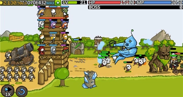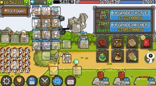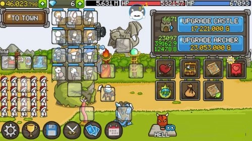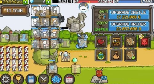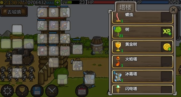 城堡塔楼能够升级成长,每一层都能放置英雄,随着金钱的增多可以购买更多的英雄以及装备武器。