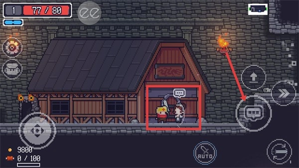 当你在地牢里碰到NPC经营的店铺(像食品店这类),就点击右边的对话按钮和店主进行互动。