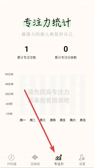 每一次计时数据都会被记录在【专注力】里,你可以点击进入专注力页面查看记录,以此来督促自己不断进步。
