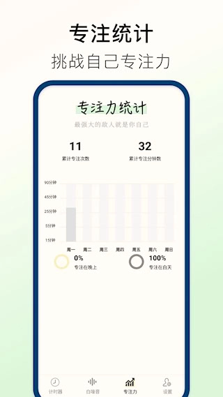 极简设计风格,目标时长可灵活设定,帮助你不断提升专注度。