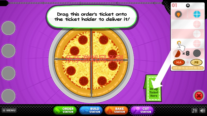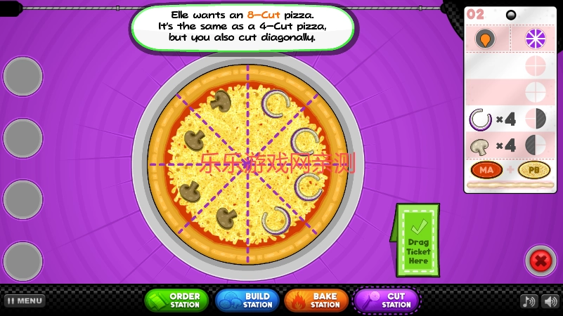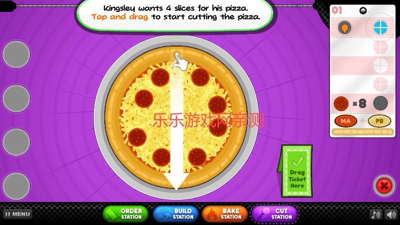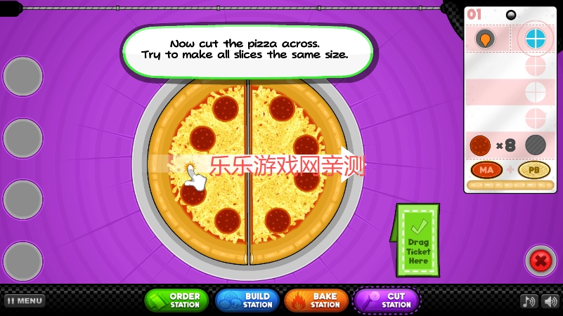 拖动屏幕上的切割线,调整其位置与角度,保证每块披萨都能满足订单的具体要求。