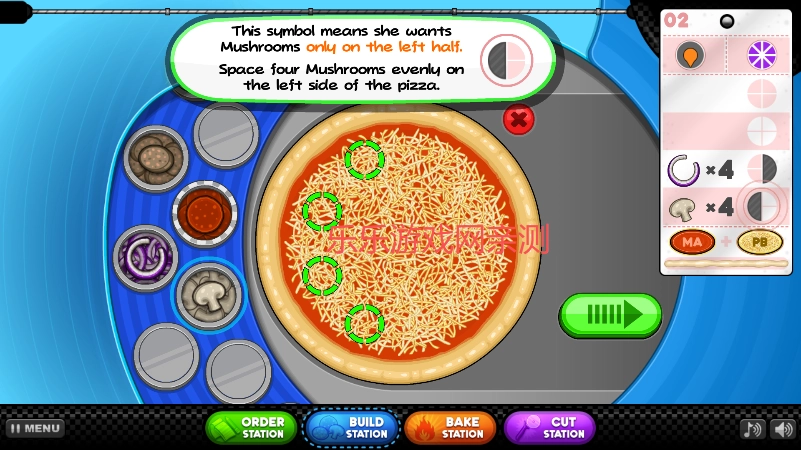 仔细查看订单要求,核实清楚所需摆放的配料类别(例如“香肠+青椒+洋葱”)以及具体数量(例如“每块披萨搭配2片香肠”)。