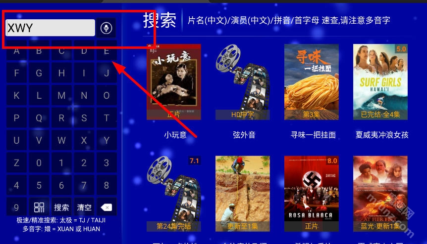 搜索框精准查找;