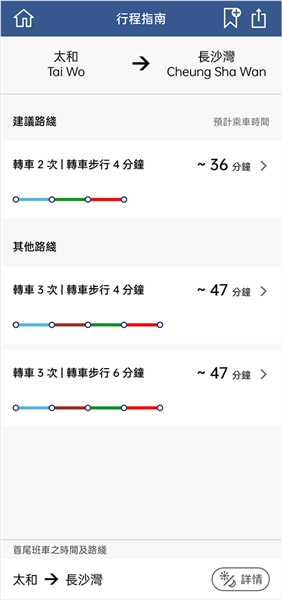 例如起点是太和,终点是长沙湾,选择之后点击路线;
