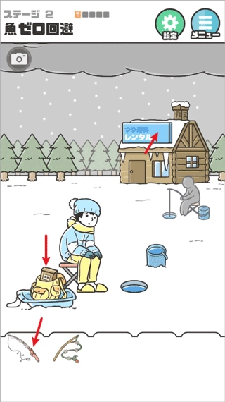点击远处广告牌上的鱼竿就能获取,之后点击书包拿到鱼饵,再点击钓竿就能开始钓鱼,成功钓上鱼就能过关。