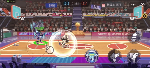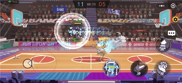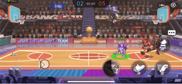 当我们成功拿到球后,若对手与我们距离很近,且此时我们离球框还有一段距离,就可以选择跳起,借助【虚拟闪现】搭配【冲】的组合,实现瞬间抵达篮筐并完成扣篮的操作。