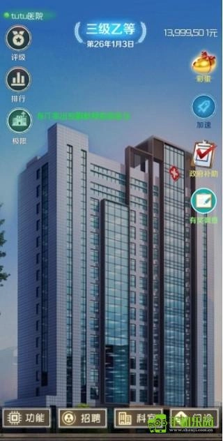 游戏内的科室设有县级、市级、省级、国家级、世界级五个不同级别,科室的等级会对病人数量以及疾病等级产生影响,而科室等级能够通过扩建来得到提升。