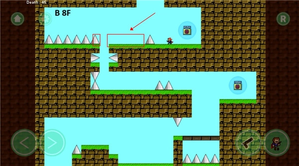 前面这个位置过去后可别掉以轻心,前方的尖刺会冷不丁地刺过来,所以我们得连续跳跃两次才行。