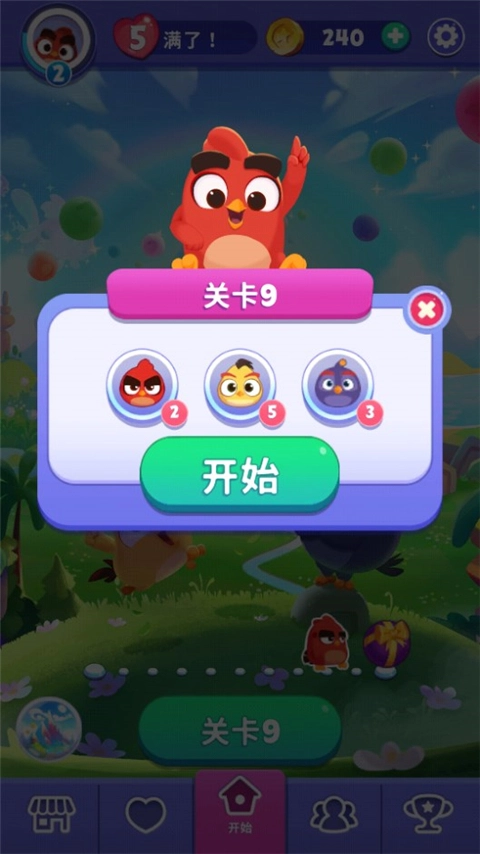 在本地完成《愤怒的小鸟梦幻爆破》的安装并启动游戏,该游戏设有闯关玩法,点击开始按钮就能进入第一关。