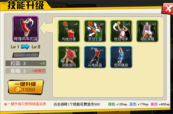 一键升级:花费金币即可直接提升一级。