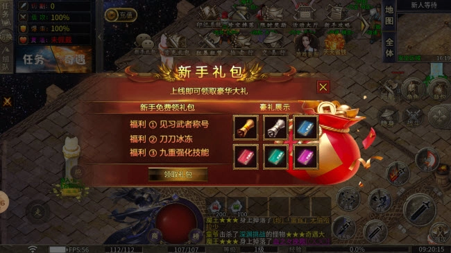 上线就能领取力刀切割、刀刀冰冻、自动隐身、九重技能、施毒术等福利。