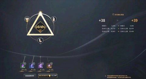 防具栏强化方面,由于防具材料的获取难度相对较高,所以建议采用100%成功率的方式来进行强化操作。