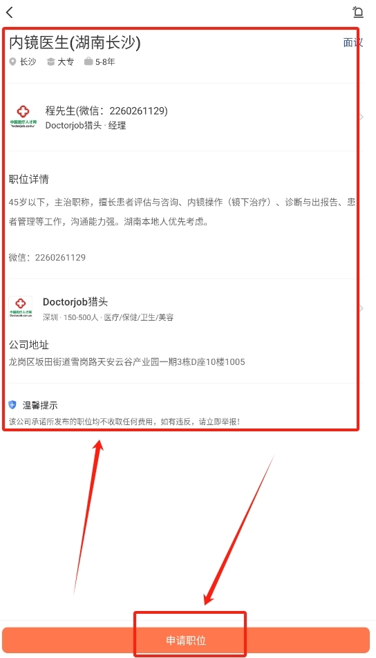 进入求职页面查看系统推荐的岗位,挑选一个感兴趣的点击进去,就能了解具体的任职要求和薪资福利说明了。