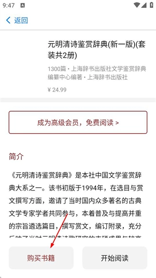在文库页面,挑选想要查看的书籍,进入该书籍的详情页面。