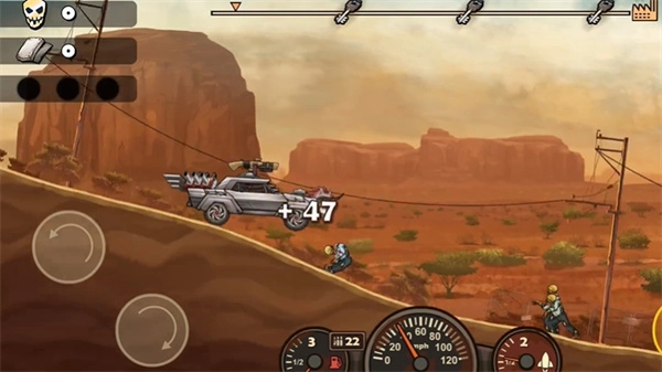 关卡内怪物数量不少,需要持续消灭它们才能继续前进,一旦车子停下,就没办法通关了。