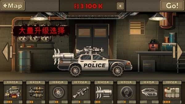 游戏中还加入了升级系统,玩家在消灭僵尸、完成任务的过程中能够获取金币与经验值,这些资源可用于提升战车性能以及解锁更强力的技能。
