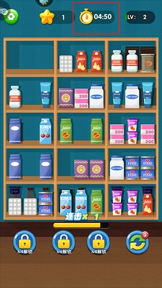 游戏设定了限时消除的规则,玩家得合理规划消除所用的时间。