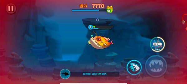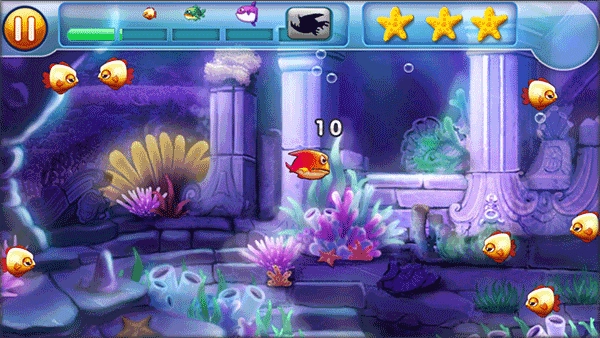 要是遇到其他大鱼,生命值就会减少,一旦生命值耗尽,游戏便宣告结束。