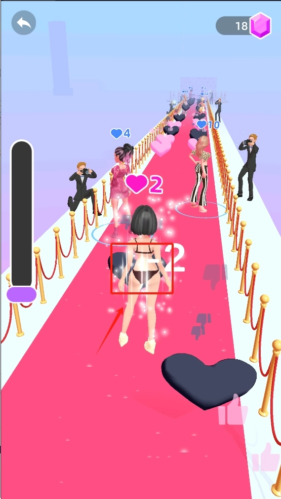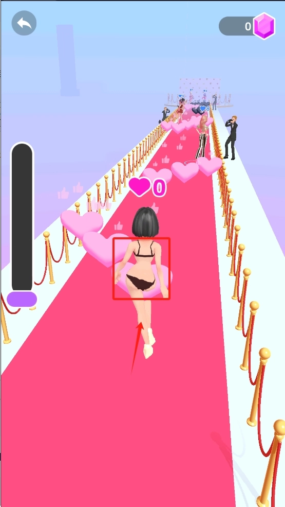 游戏里收集到的爱心数量越多,得分就会越高。要尽可能待在红毯的中间位置,这样才能拿到更多爱心。
