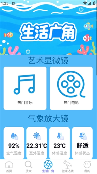 点击页面下方的“生活广角”,就能使用艺术放大镜、气象放大镜等功能了。
