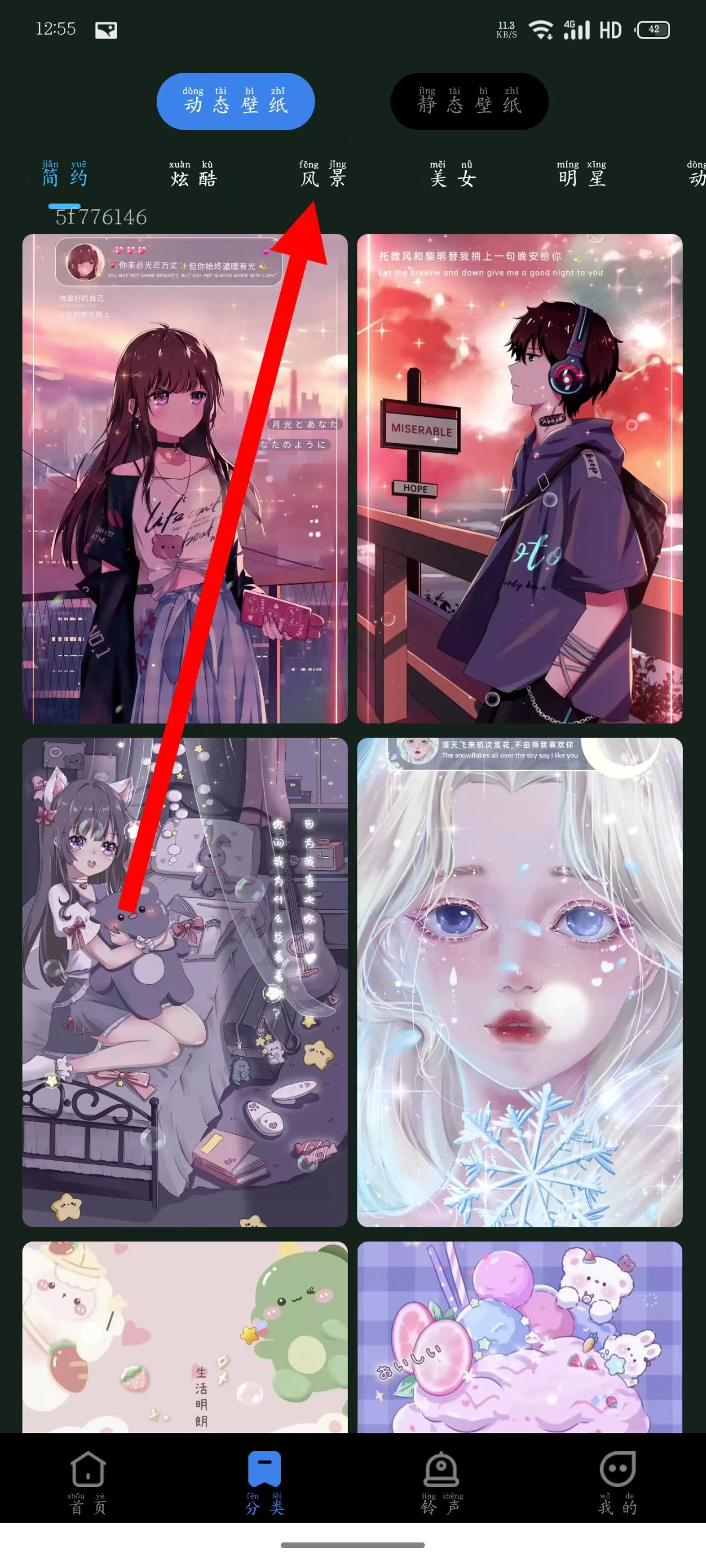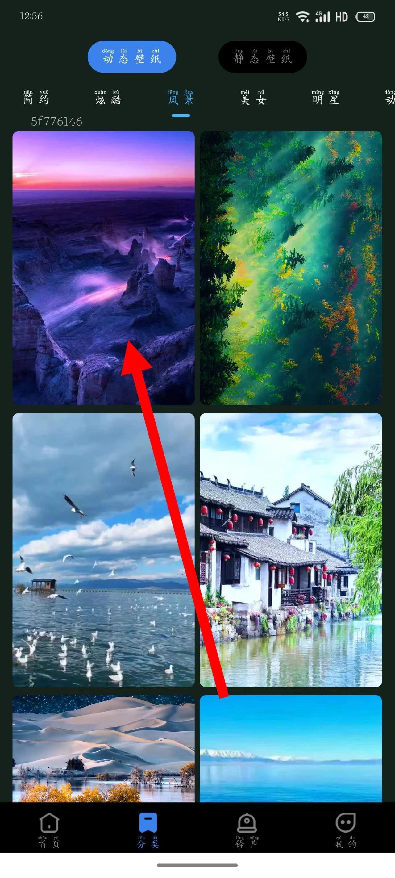 在分类页面中,可选择静态壁纸或动态壁纸,然后点击下方对应的具体壁纸分类。
