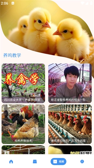 点击页面下方的‘视频’,即可看到养鸡教学。