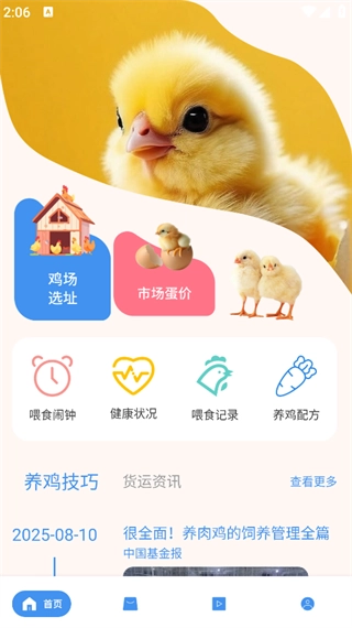 养鸡宝是专为新手养殖户打造的养鸡教学指导软件,依托专业知识与实用工具,助力新手养殖户顺利开启养鸡事业。平台涵盖全面的养鸡技巧内容,新手养殖户可通过学习,提前掌握各类实用的养鸡技巧与方法,为养鸡工作做好充足准备。