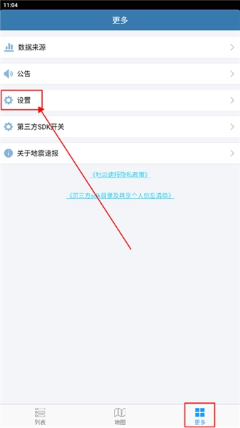 进入,在“更多”页面,点击“设置”;