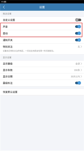设置→安全→应急预警通知→地震预警