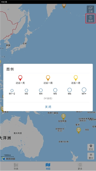 地震列表中的每一场地震都能在地图上精准定位,而震级的大小与发震的具体时刻,则通过不同的标注符号来加以区分。