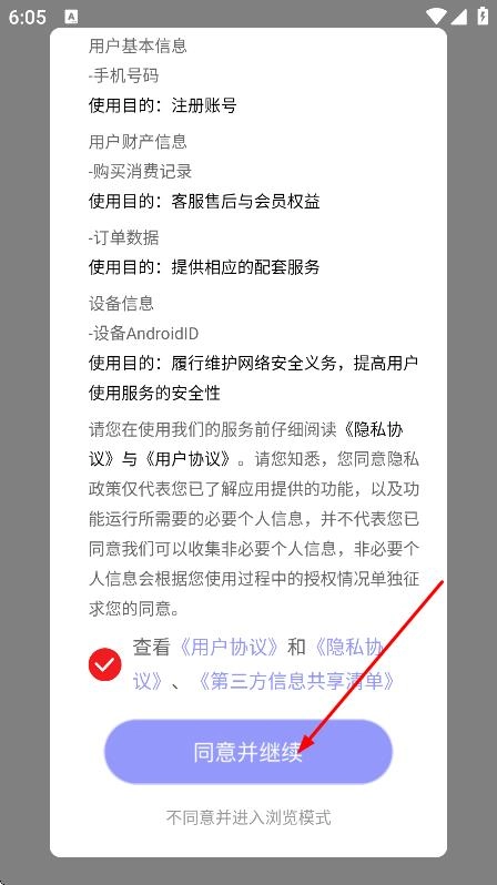 在隐私协议弹窗里,点击同意并继续,就能进入小悟故事的主页面啦。
