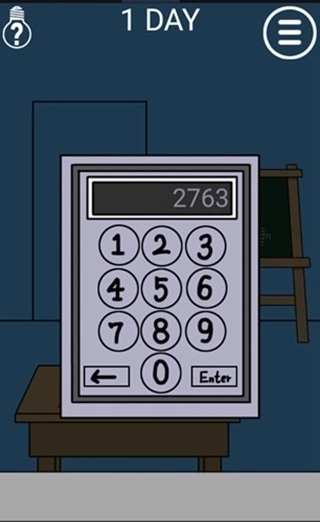 第一关:点击房间里的黑板,仔细观察后会发现,黑板上的每个符号都是由4个相同的数字组成的。而这4个数字,就是解开锁的密码:2763。