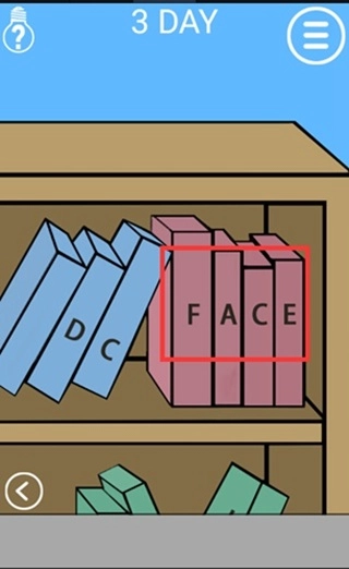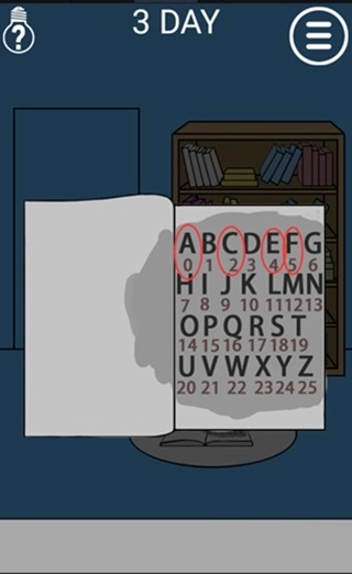 第三关:1. 点击书架,找到一本红色封面的书,记下书封面上的英文字母。2. 用书架上的药水将书本“弄湿”,书页会显示出与字母对应的数字,对照后得到密码:5024。