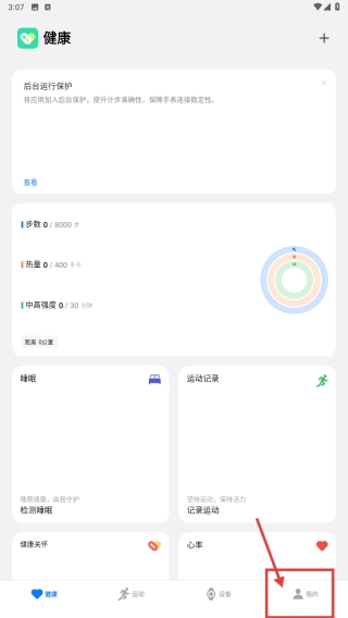 打开健康类应用,点击底部的“我的”选项,即可进入个人中心页面。