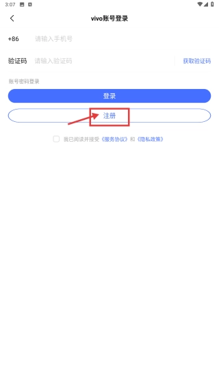 在vivo账号登录界面,选择注册选项,即可进入账号注册页面。