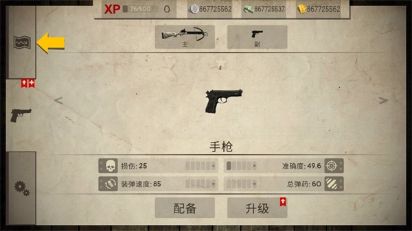 现在你有两种武器,每种武器的弹药量显示在武器图标下方,切换武器时点击不同枪械就行。