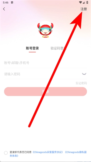 进入登录注册界面后,点击右上角的注册按钮,即可切换至账号注册页面。