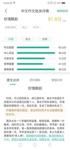 全批改:字词语句错误无处可藏;句评段评一目了然。