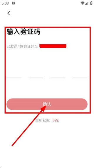 在输入手机号后点击“获取验证码”按钮,即可跳转至验证码输入页面。