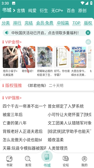 进入晋江小说阅读平台后,找到并点击VIP金榜,即可进入VIP金榜对应的页面。